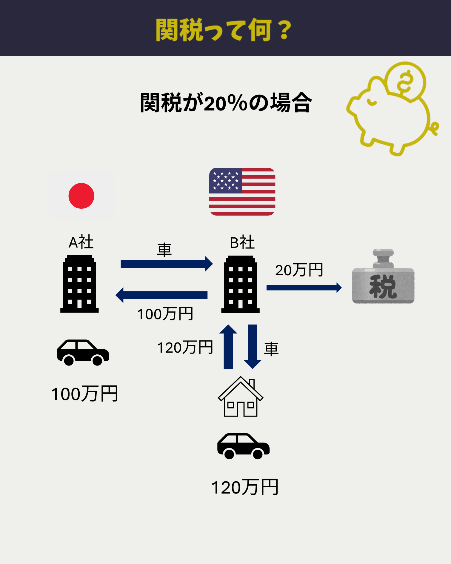 読み終えた時に「いくら支出が増えそうだな」となれるよう、論理的に関税の影響について解説します。