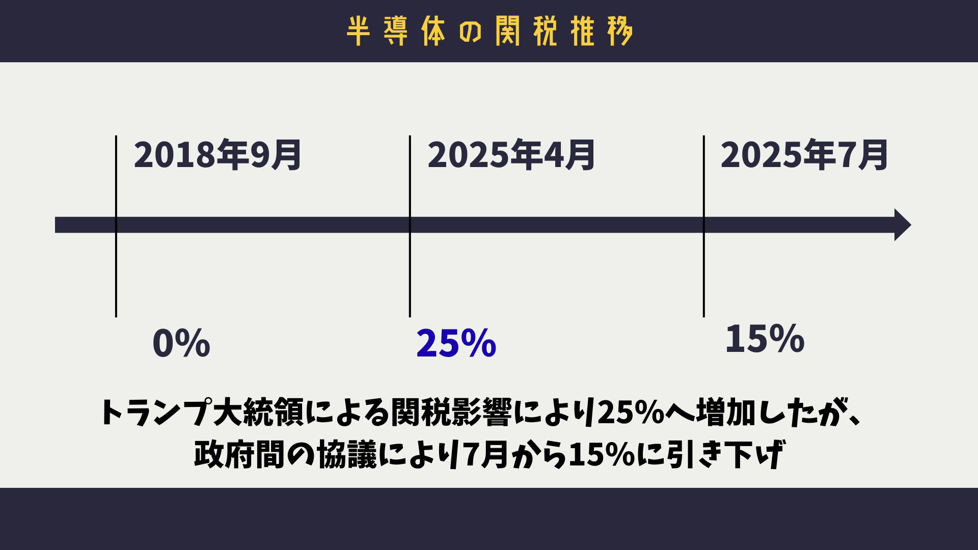 半導体も自動車と同じく4月に25%に引き上げされた後、7月に15%に引き下げられています。